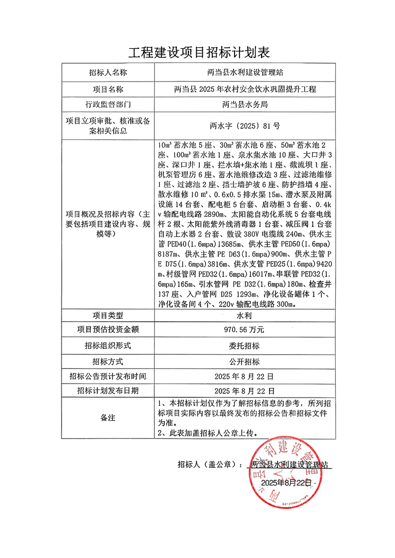 兩當(dāng)縣2025年農(nóng)村安全飲水鞏固提升工程