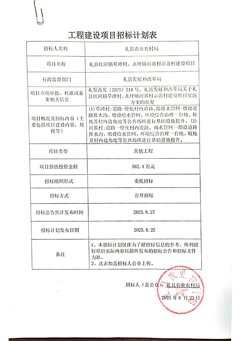 招標計劃-禮縣紅河鎮(zhèn)草灘村、永坪鎮(zhèn)河那村示范村建設項目.pdf