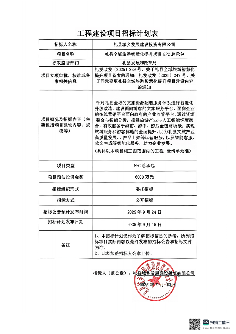 禮縣全域旅游智慧化提升項目EPC總承包