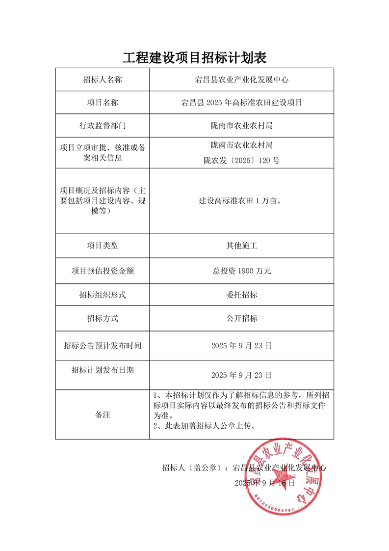 宕昌縣2025年高標(biāo)準(zhǔn)農(nóng)田建設(shè)項(xiàng)目