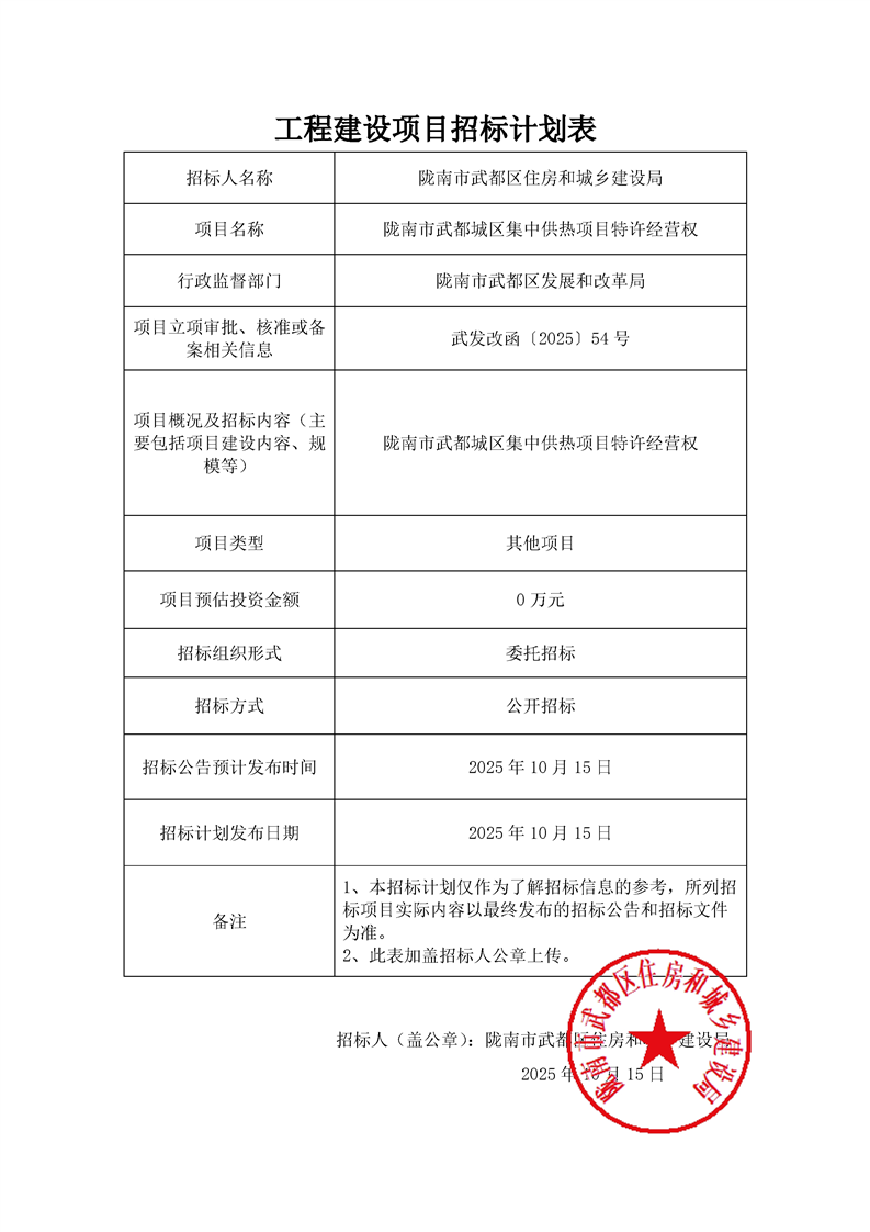 隴南市武都城區(qū)集中供熱項(xiàng)目特許經(jīng)營(yíng)權(quán)