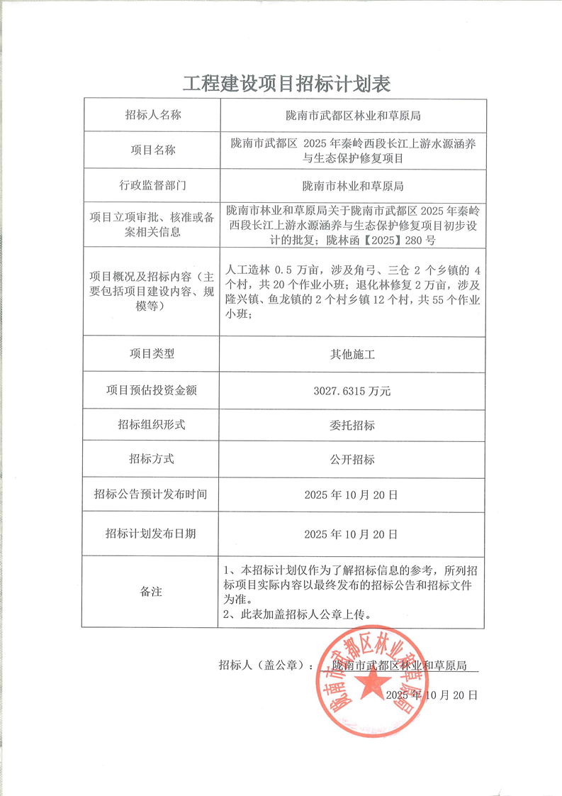 隴南市武都區(qū)2025年秦嶺西段長江上游水源涵養(yǎng)與生態(tài)保護(hù)修復(fù)項(xiàng)目