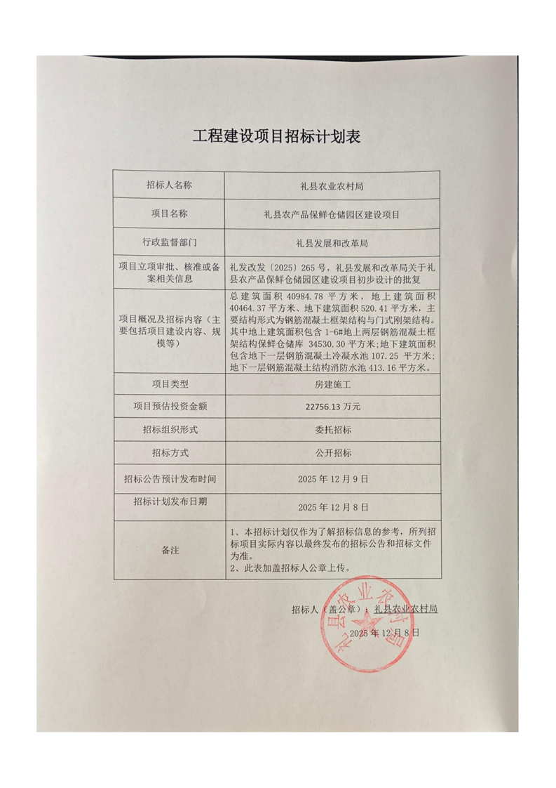 禮縣農(nóng)產(chǎn)品保鮮倉儲園區(qū)建設(shè)項目