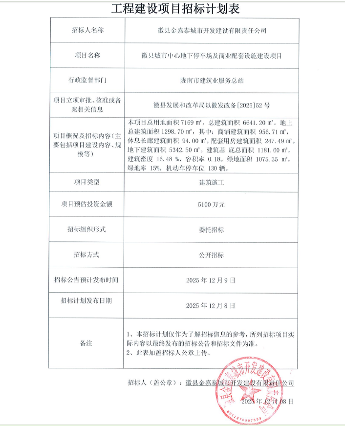 徽縣城市中心地下停車場(chǎng)及商業(yè)配套設(shè)施建設(shè)項(xiàng)目