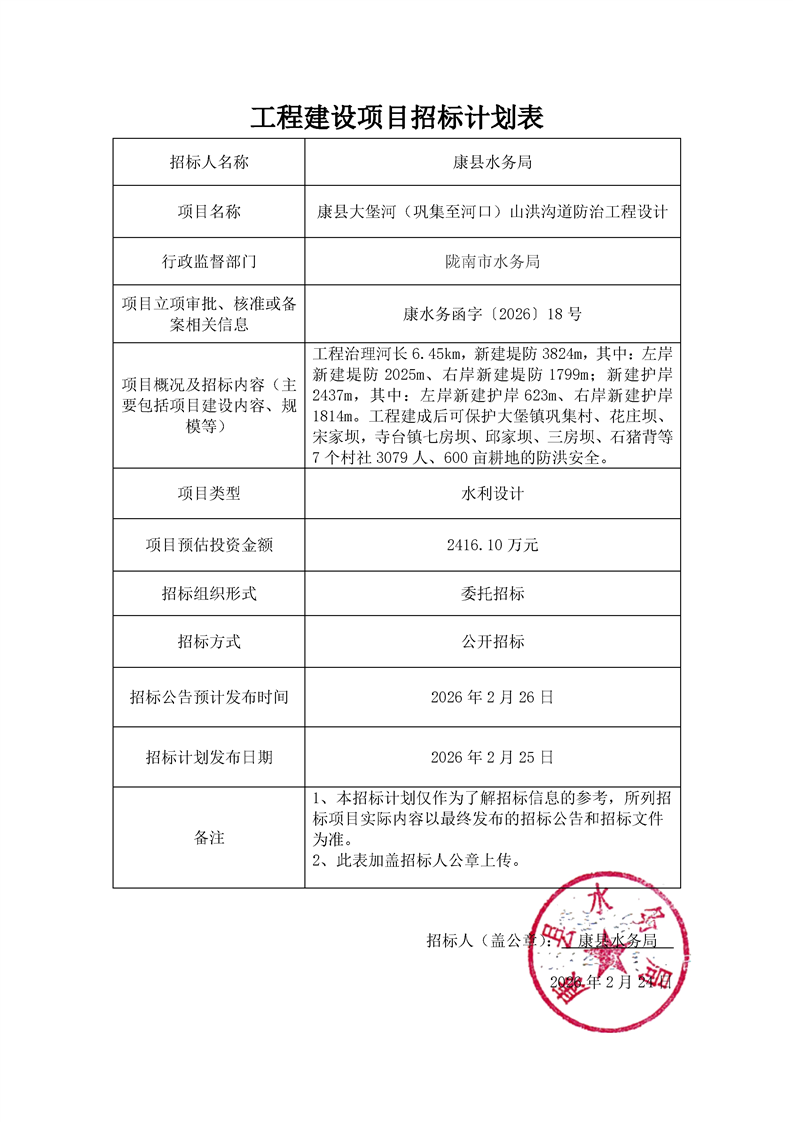 康縣大堡河(鞏集至河口)山洪溝道防治工程設(shè)計