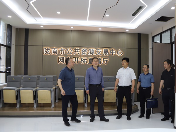 6月6日,省公共資源交易中心黨組書記、主任趙建鋒一行深入隴南,調(diào)研公共資源交易“全省一張網(wǎng)”建設(shè)、優(yōu)化營商環(huán)境等工作并召開座談會。市委常委、副市長朱松華陪同調(diào)研。